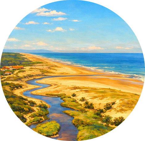 Il imagine immédiatement l'océan. De grandes plages. Des vagues longues. Des surfeurs qui attendent, immobiles, face à l'horizon. Dans sa tête, la région est surtout faite de sable, de pins et d'air salé. Un endroit pour les vacances, pour marcher pieds nus, pour regarder le soleil se coucher sur l'Atlantique. Il pense aussi au vin, aux canards, aux marchés gourmands. Mais tout cela lui semble un peu flou, comme une carte aux contours imprécis.